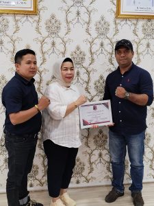 Acara diakhiri dengan penyerahan piagam penghargaan dari Adiwarman Lubis selaku Ketua Umum LSM TKN kepada Kadis Naker, serta sesi foto bersama seluruh peserta audensi.