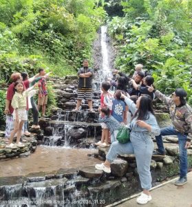 Air terjun alami yang dikelilingi pepohonan hijau menjadi daya tarik utama bagi wisatawan yang ingin menghabiskan waktu berkualitas bersama keluarga.