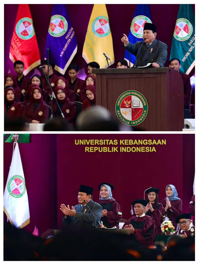 Presiden Prabowo Subianto menyerukan kepada generasi muda Indonesia untuk berani memilih jalan kebenaran, meskipun dipenuhi dengan tantangan dan kesulitan. Seruan ini disampaikan saat Presiden memberikan orasi ilmiah pada Sidang Senat Terbuka Universitas Kebangsaan Republik Indonesia (UKRI) dalam rangka Pengukuhan Mahasiswa Baru dan Wisuda Sarjana Tahun Ajaran 2025/2026 di Kota Bandung, Jawa Barat, Sabtu (18/10/2025).