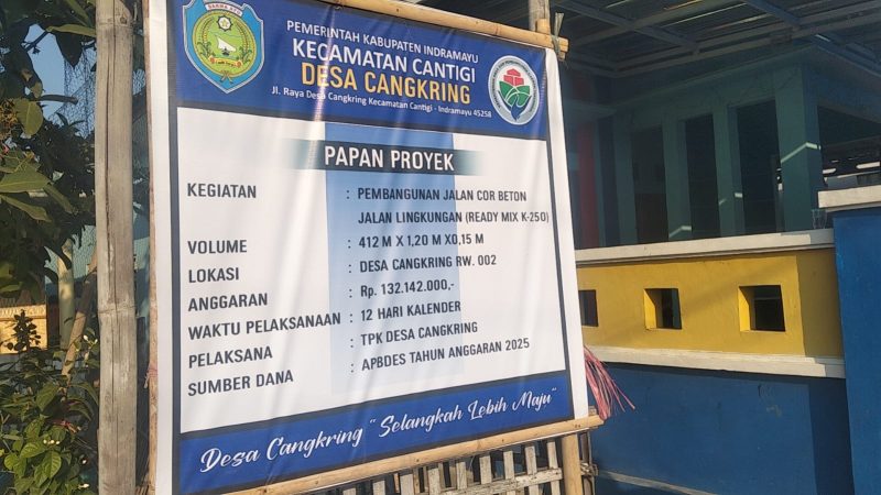 Pembangunan jalan cor beton di Desa Cangkring, Kecamatan Cantigi, Kabupaten Indramayu, Jawa Barat diduga volumenya dicurangi dan tidak sesuai spesifikasi.